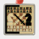A chessboard with chess pieces design, plus larger opposing knights and crossed swords.