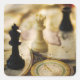 Chess pieces on old world map square sticker