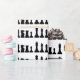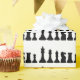 This wrapping paper features tiled design of black chess pieces. The background colour can be changed, if desired.