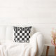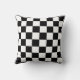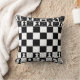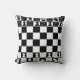 On one side, a black and white chess set. On the other side, a plain black and white chequerboard pattern, so you can use this pillow to play your own game of chess!
