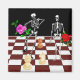 Two skeletons holding roses dance on a chessboard. Is it checkmate or not? Great gift for your favourite chessplayer or buy one for yourself and dress well for your next match.