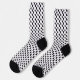Chess socks with chequered knight horse pattern. Custom colour socks for chess lovers and players. Black and white chess piece pattern socks gift. Cool patterned sport socks in custom colour. Personalised with text optionally. Available in small and large sizes. Chess piece logo design. Unique Birthday gift ideas for chess lover. Also great as present for the Christmas Holidays. Create a pair for grand master, dad, husband, boyfriend, boss, coworker, teacher, son, grandpa, father, tutor, student etc. Use ALT code to change the icon into pawn, knight, bishop, rook, queen or king. ♕♔♘♗♖♙ ♚♛♞♝♜♟. You can't loose with these lucky pair of socks on ; ) Comfortable materials.