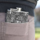 It's your move! This original hip flask design in honour of the classic game of chess features terminology from the game along with eye-catching graphics of chess pieces to complete the pattern. The traditional black and white colour scheme has been given a more modern, contemporary vibe with the addition of shades of silver and grey. A subtle checked background mimics a chessboard without being too in-your-face. Search ID784 to see the complete range of colours and additional products with this design.