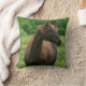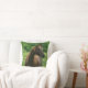 Photograph of chestnut horse looking to the right against grass and trees with green background and pillow colour (customisable)/