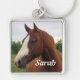 Photograph of head and chest of chestnut horse with wide blaze. Text may be changed or removed.