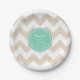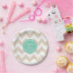 Customisable 35th Birthday Party Paper Plate with chevron and customisable colour into round tag. You can easily change background colour ((here aqua mint colour) and text colour (name), font, size and position by clicking the customise button. Matching Chevron Birthday paper Napkins, birthday save the date, invitation and guest book. Don't forget the whole collection.