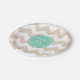 Customisable 95th Birthday Party Paper Plate with chevron and customisable colour into round tag. You can easily change background colour ((here aqua mint colour) and text colour (name), font, size and position by clicking the customise button. Matching Chevron Birthday paper Napkins, birthday save the date, invitation and guest book. Don't forget the whole collection.