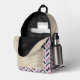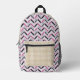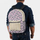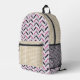 A Chevron pattern made up of greys and magenta are highlighted with a soft beige, chequered print.