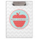 A clipboard for teachers featuring an illustration of a red chevron apple over a light blue quatrefoil background. Personalise with your name on apple.