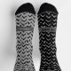 Geometric design featuring a black pattern on a grey sock. And gray pattern on a black sock. Crazy mismatched socks. Space for your name or text around the foot.