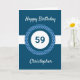 A personalised blue 59th birthday card for him, which you can easily personalise with the age you need along with his name on the front of the card. You can easily personalise the inside card message if you wanted. This personalised 59th birthday card for him would make a great keepsake.