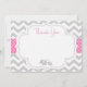 Adorable Pink and grey chevron patterned 5x7 flat thank you card features a mother elephant with her newborn baby. This is the perfect way to thank you family and friends.