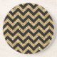 Hip and trendy Chevron Glitter Look Coaster. This cool coaster features a chevron zig zag pattern on top of a digital art gold glitter background. Add text to this design to give it a personal touch.