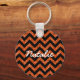 Hip and trendy Chevron Glitter Look Keychain. This cool keychain features a chevron zig zag pattern on top of a digital art orange glitter background. Add text to this design to give it a personal touch.