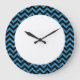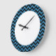 Hip and trendy Chevron Glitter Look Clock. This cool clock features a chevron zig zag pattern on top of a digital art blue glitter background. Add text to this design to give it a personal touch.
