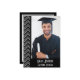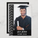Black-and-silver chevron photo frame for a graduation party invitation featuring a personalized photo of the graduate.