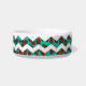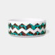 This is a heavy, durable bowl decorated with Tibbies of many colors, the perfect size for hungry/thirsty Tibs. The design is interesting and printing clear.