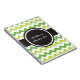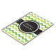 Gradient lime green chevron pattern with centre black circle for personalisation text.