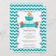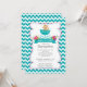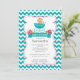Cute & modern sweet little monkey boy baby shower invitation. Our chic invitation features a cute monkey sitting in a baby carriage with a modern banner with pretty dainty flowers set on a turquoise blue chevron zig zag background. Flip our popular and stylish invitation over to find a matching chevron back for an extra special touch. Perfect for a safari baby shower, jungle baby shower or monkey baby shower theme party. Available in our shop in a variety of popular colour choices.