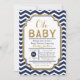 This chevron navy and gold baby shower invitation is perfect for the arrival of a new baby boy! Please note no actual glitter is used. Invitation is made with a glitter texture to resemble glitter when printed. Check out the Ellison Reed shop for more creative designs!