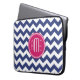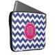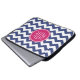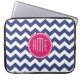 Chevron Pattern with Monogram - Navy Magenta Laptop Sleeve