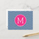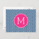 Chevron Pattern with Monogram - Navy Magenta Postcard