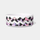 This is a heavy, durable bowl decorated with Tibbies of many colors, the perfect size for hungry/thirsty Tibs. The design is interesting and printing clear.