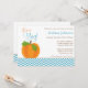 Sweet and modern fall themed boy baby shower invitations. Featuring a pumpkin and chevron pattern in shades of teal blue, brown and orange.
