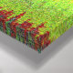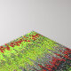 A gritty abstract in shades of brick red, lime green, yellow gold, charcoal grey, black and more!