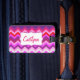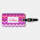 Stylish modern zigzag chevron patterned graphic luggage tag in bright pink , red and purple multi colours making bags easy to spot! Perfect for holidays and trips. Add your name and initial to front of tag and customise the reverse of this tag with your name and address details. Original pattern and design by Sarah Trett.