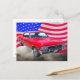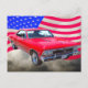 1966 red Chevy Chevelle SS 396 classic muscle car photo with American Flag background.