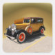 A like new 1931 Chevrolet Special 4 door sedan in original colours of Coffee Cream, Turnpike Brown, Swamp Holly Orange and black. It features window shades, trunk, chrome radiator stone guard, eagle radiator cap, flower vases & whitewalls. Presented over a custom golden background.