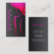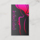 Unique salon business card featuring a line drawing of a woman with big hair and colourized to bright magenta and red, background is grey gradient colour. Fully customisable, just replace the provided text with your salon, spa or other business services information.