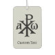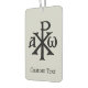 Chi-ro christogram icon with alpha and omega letters. Monogram forming abbreviation for the name of Jesus Christ. Vector monochrom icon with customizable color. Custom background color. Custom text on both sides.