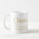 Simple personalized name definition text mug for the name Chiara / Clara meaning in a dictionary style three point meaning 1. Bright in mind and spirit 2. Rare and unforgettable 3. Cherished by those around her. Other name meanings and styles available or personalize this with your own name and what your name means to you, then add your own special photo to make this mug truely for Chiara! Designed by www.mylittleeden.com and namesense on Zazzle.
