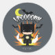 This playful graphic features a chibi-style Batman riding his motorcycle under a crescent moon, surrounded by flying bats. The design captures the whimsical side of Gotham's dark hero in a fun and kid-friendly format. With bold "VROOOOM!" text mimicking the roaring sound of the Batcycle's engine and vibrant explosion effects in the background, the artwork is dynamic and full of energy. The cartoonish depiction of Batman, complete with his iconic costume and stoic expression, adds a charming twist to the legendary character. This graphic is perfect for younger fans of Batman, offering a lighthearted take on the usually intense superhero adventures.