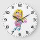 Keep time to the beat with this blonde girl rocker wall clock featuring a cute chibi musician illustration. This decorative timepiece is a fantastic addition to a music room, bedroom, or recording studio, adding a bright and energetic focal point to your wall. The colorful design with the pink bass guitar and blue background helps create an inspiring atmosphere for practice sessions and creative brainstorming for any young performer.