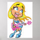 Chibi Blonde Girl Rocker Playing Pink Bass Guitar Poster