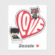 Check out Chibi Catwoman pouncing on Chibi Batman in this adorable graphic, featuring a giant red heart with the word "Love".