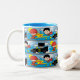 Chibi Flash, Superman, and Batman Racing Pattern Two-Tone Coffee Mug