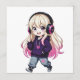 Adorable kawaii chibi anime girl design with pink aesthetic headphones, perfect for unique gifts and personalized accessories.