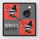 Chibi Harley Quinn Chequered Pattern Square Wall Clock