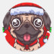 Chibi Kawaii Dog Pug Christmas Circle Sticker