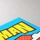 Check out Chibi Superman flying in the clouds with his super hero name overhead and red polka dot shield shape behind him.