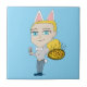 a cat ears bunny tailed chibi girl serving pizza