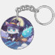 Chibi Witch Cat Flying in Starry Sky – Kawaii Magi Key Ring