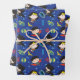 Chibi Wonder Woman, Superman, and Batman Pattern Wrapping Paper Sheet