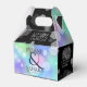 Celebrate the 14th, 24th, 34th, or 43rd wedding anniversary in style with this commemorative favour box! Elegant black and white serif lettering with hexagonal confetti on alternating iridescent opal and black backgrounds add a memorable touch for this special occasion and (extraordinary) milestone. Customise with the happy couple's names, years of marriage, and personalised congratulatory messages for their opal anniversary.