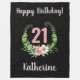 Chic black 21st Birthday fleece blanket with a blush pink 21 and Floral Wreath. Customise the name, age and greeting message.