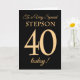 Chic 40th Gold-effect on Black, Stepson Birthday Card